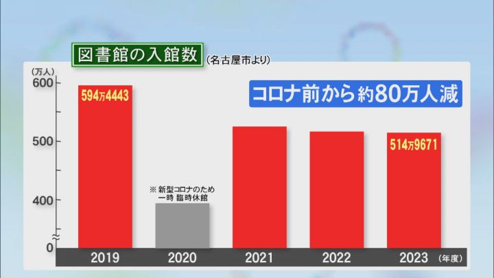 市内の図書館を巡っては、年々入館者が減少し、コロナ禍前に比べおよそ80万人もの入館者が減っています。