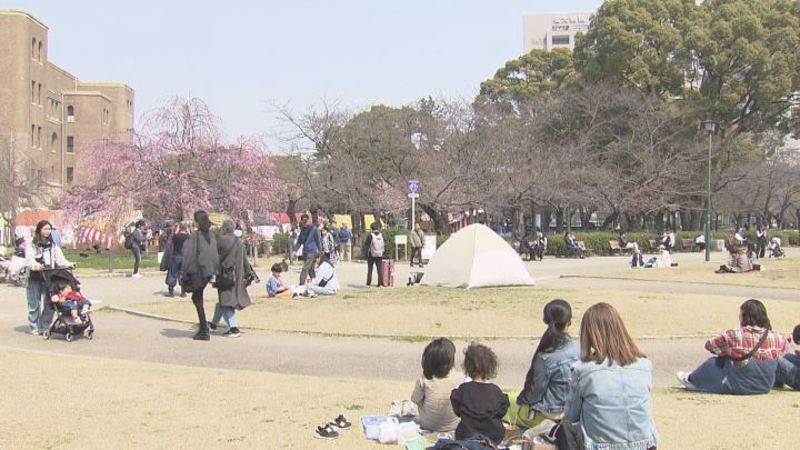 名古屋の花見スポット・昭和区の鶴舞公園では、26日はまだ蕾が開き始めた程度でしたが、気が早い人たちがお花見気分を楽しんでいました。