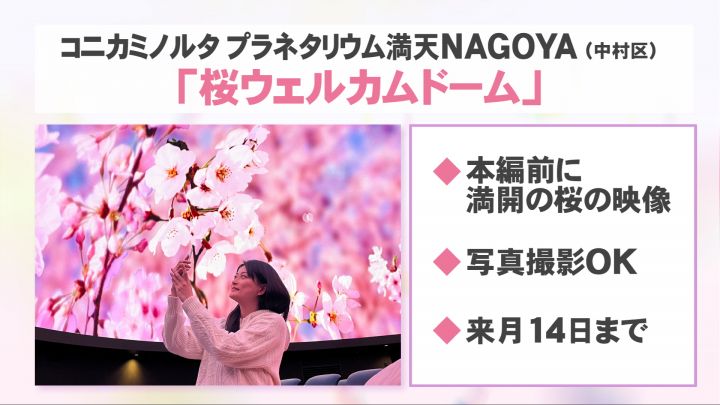 名古屋市中村区の「イオンモール Nagoya Noritake Garden」にある『コニカミノルタプラネタリウム満天NAGOYA』では、毎回の上映前に満開の桜の映像が流れる「桜ウェルカムドーム」を開催しています。