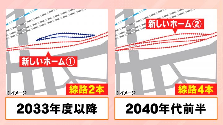 工事は2033年度以降に新しい2本の線路が完成し、2040年代前半に4本の線路が完成する予定です。