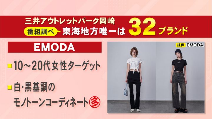 そのひとつが、若い女性をメインターゲットにしたファッションブランド、EMODA(エモダ)です。白や黒を基調としたモノトーンコーディネートが多いのが特徴で、人気となりそうです。