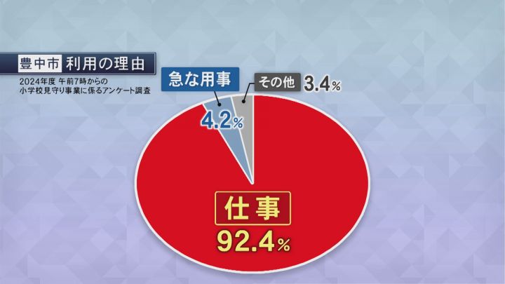 豊中市の大池小学校では、午前7時に警備員によって校門が開けられる。すると、仕事に向かう保護者が、子供を連れて次々にやってくる姿が確認できた。