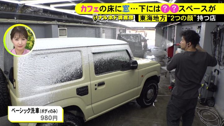 その視線の先には、泡まみれになった車。この店は、2階が「カフェ」、そして1階が「洗車場」という“2つの顔”を持っています。