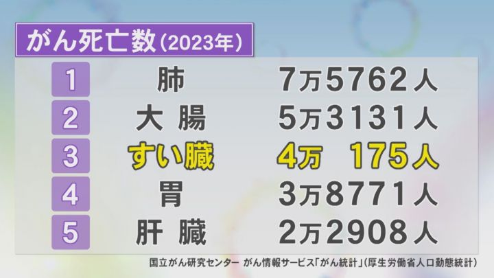 中でも死亡者が増えているのが「すい臓がん」で、2023年には4万人を超え、胃がんを抜き、3番目に多い“がん”となった。