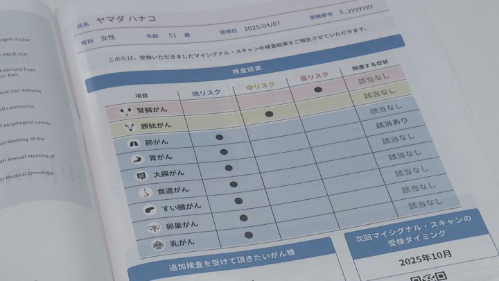 現在はすい臓がんなど10種類のがんを対象に、リスクを「低・中・高」の3段階で判定され、リスクが高いと判定された場合、速やかに精密検査を受けることを勧めている。