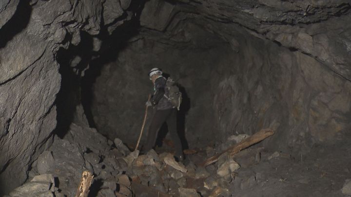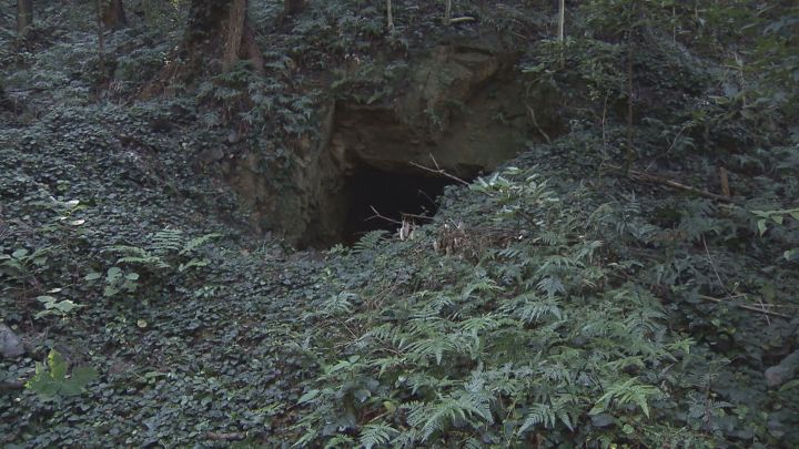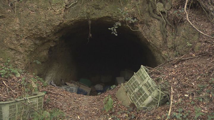 道なき道を進んでいくと、ひっそりと残された大きな穴がありました。奥行きは7、8メートルあります。