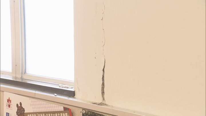青森県七戸町にある土器などの展示施設「二ツ森貝塚館」では、公開中の展示物はワイヤーで固定してあり無事でしたが、廊下の壁には大きなヒビが入るなどの被害が。