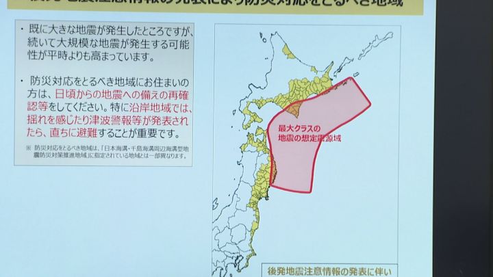 今回の地震を受け、気象庁は別の大規模な地震が起きる可能性が普段より高まっているとして、「北海道・三陸沖後発地震注意情報」を運用開始以来初めて発表しました。