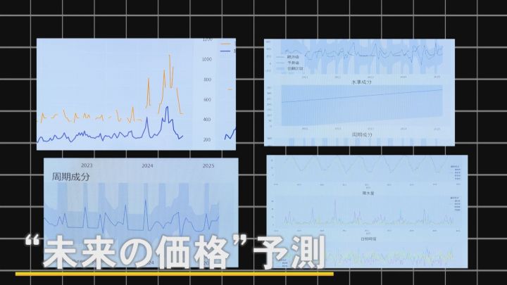 実証実験では献立の組み換えだけでなく、4カ月後の野菜の価格を予測することも目指しています。実際の卸売価格と、気温や降水量、日照時間などのデータから「未来の価格」を予測しようという試みです。