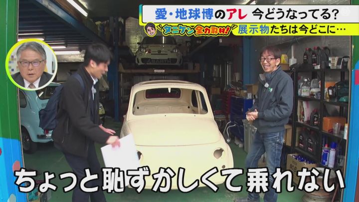 イタリア館で展示されていた、ボディー全面にホワイトチョコレートがコーティングされたチンクエチェント(フィアット500)。所有しているという博物館の館長を訪ねるため、瀬戸市へ向かいました。