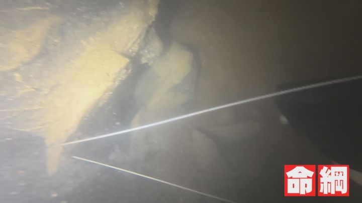 しかし泥が舞い上がり、前は全く見えなくなりました。こうした中、命を守るのが、岩場に張り巡らされたライン。少し進むごとに、岩場に固定することで、帰り道の目印にしていきます。