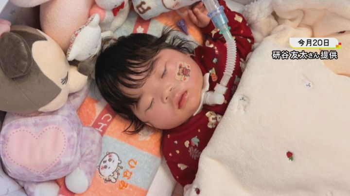 生まれた時から人工呼吸器が外せない、研谷日七未ちゃん。生後8カ月が経ち、髪の毛はのび、体も少し大きくなったようですが、まだその目で家族の顔を見たことはありません。