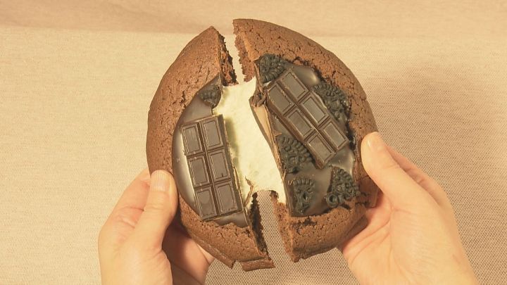 見た目は普通ですが、割ると中からトルコの綿菓子「ピシュマニエ」が。