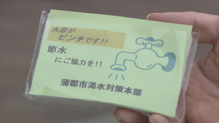 蒲郡市のスーパーでは6日、市の職員らがティッシュペーパーを配り、節水を呼びかけました。