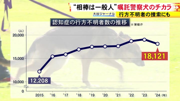 後継者不足は、訓練士だけではない。行方不明者の数が増える一方で、嘱託警察犬の数も、10年前から1割以上減少している。