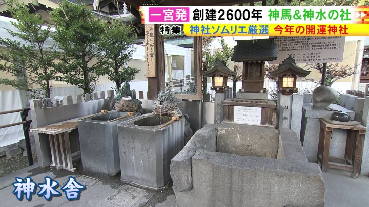 午年にちなみ、愛知県一宮市の真清田神社を参拝。ご鎮座2650年の歴史を誇る古社で、例祭「桃花祭」は別名“馬まつり”と呼ばれています。神聖なご神水やみずみくじも人気を集めています。