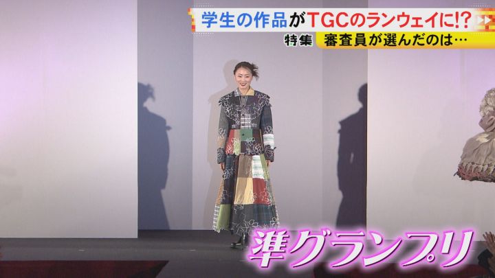 準グランプリは、パッチワークの上に花柄の刺繍を加えた、上品な印象の作品だ。今回のTGCのテーマ「TSUMUGU」を表すように丁寧に紡がれたパッチワークが、“尾州”の魅力を引き出している。