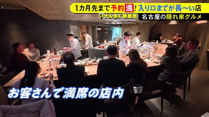 調理場を囲むように設けられたカウンター席は連日満席。1カ月先まで予約が埋まるほどの人気です。