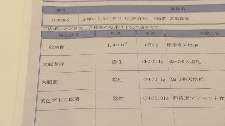 「食中毒対策が万全な体制で取られているかを、外部の検査機関に検査してもらった結果になります」