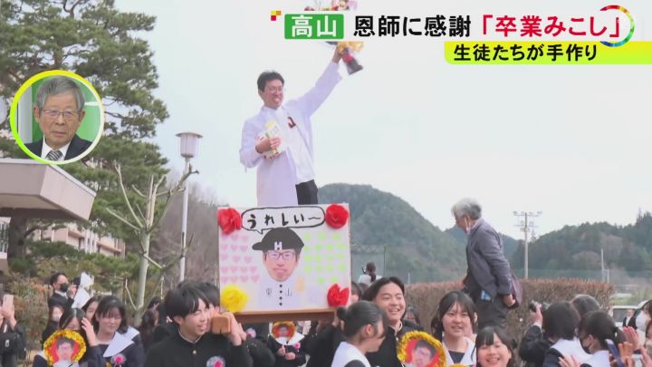 岐阜県高山市の東山中学校では、卒業式に「みこし」が登場しました。みこしに乗っているのは先生です。
