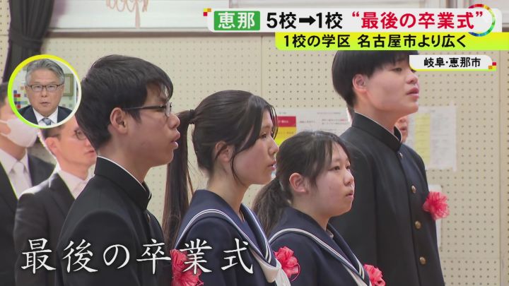 東海3県の多くの公立中学校で3月6日、卒業式が行われました。岐阜県恵那市では過疎化や少子化の影響で、新年度から南部の5校が統合されることから『最後の卒業式』となりました。