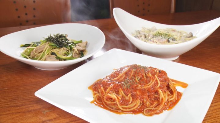そんな店のランチも、やはり驚きの価格でした。 税込550円のランチは日替わりで3種類。すべて注文を受けてから調理しています。ニンニク入りの自家製トマトソースをたっぷり絡めた、ピリ辛の「アラビアータ」。さっぱり食べたい人には、和風パスタの「豚肉と小松菜のバターしょうゆ風味」。さらに女性に人気の「ベーコンとしめじのクリームソース」。本格的な3種類から選べるのが魅力です。