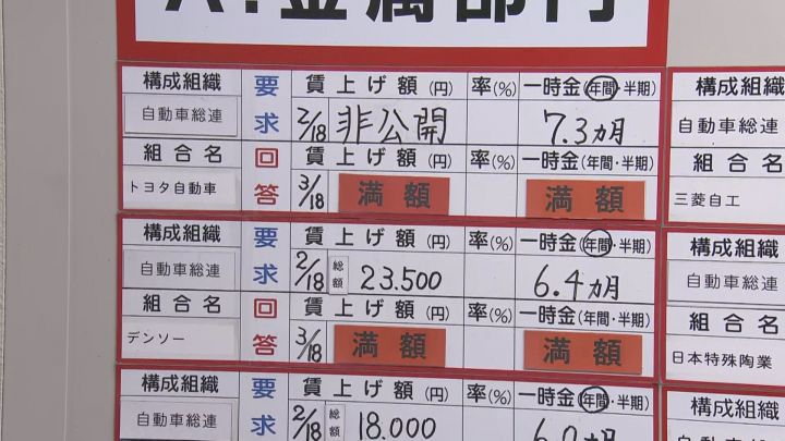 18日に集中回答日を迎えた春闘。トヨタ自動車が最も高いケースで月に2万円以上の賃上げになるなど、大手企業が多いこともあってか、組合要求への満額回答や高い水準での回答が相次ぎました。