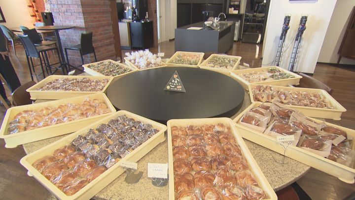 月に1回、社員に無料でパンを提供していて、カレーパンや菓子パンなど10種類から1人何個でも選ぶことができます。