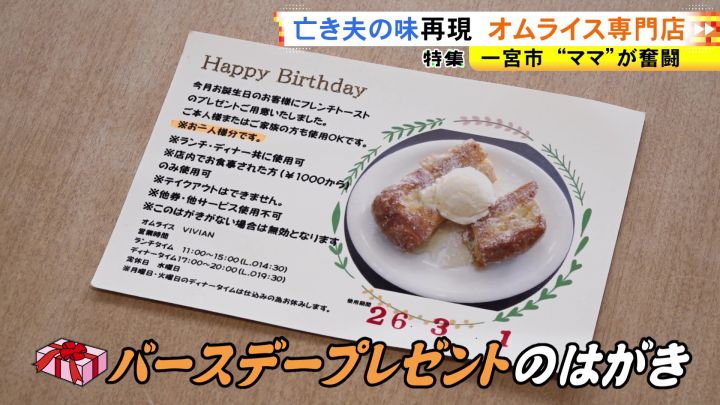 一方、こちらの家族が持ってきたのは「バースデープレゼント」のはがき。はちみつとアイスクリームがのったフレンチトーストが無料でプレゼントされます。