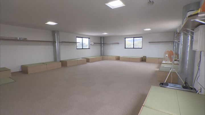 屋根と壁で雨風がしのげる避難スペースには最大100人が収容でき、非常食300食分や水、毛布などが備えられています。
