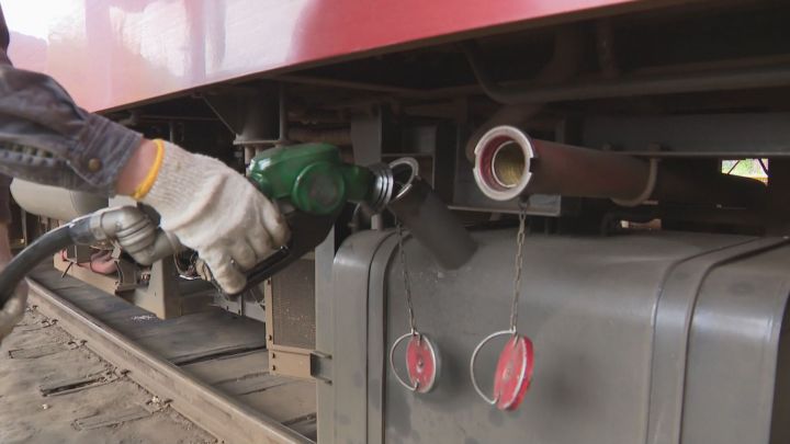 11両ある列車は、すべてがディーゼル車。電車ではないため燃料は軽油で、およそ72キロの路線を走るために1日1000リットルほどが必要です。