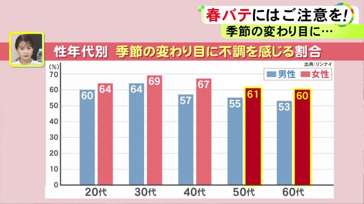 給湯機器などのメーカー「リンナイ」が2025年、全国2350人を対象に行った調査では、およそ6割の人が季節の変わり目に体の不調を経験しています。
