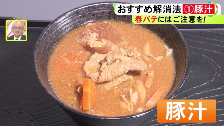「豚汁に入っているものがおすすめです。食物繊維が取れそうな根菜類、温まりそうなショウガ、そして発酵食品の味噌、そういったものを食べていただくこと。腸内環境を整えるだけで、胃腸の不快感や身体のだるさが少し取れる方もいるので、ぜひ腸内環境を整えることをおすすめします」