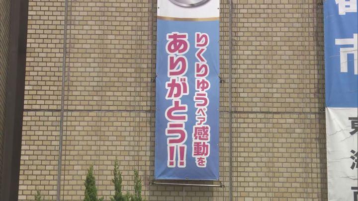 木原選手の地元、愛知県東海市の市役所には『りくりゅうペア 感動をありがとう!』と書かれた懸垂幕が掲示されています。