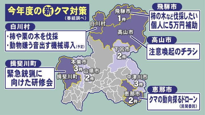 クマの生態に詳しい岐阜大学の淺野玄准教授によりますと、岐阜県内に生息するクマの数はこの10年で1.5倍に増えています。秋のどんぐりに比べて、春に食べる新芽などは豊作・凶作の差が少ないですが、クマが増えたことで人里に出没してしまうリスクは高くなっているといいます。
