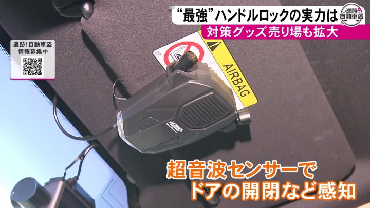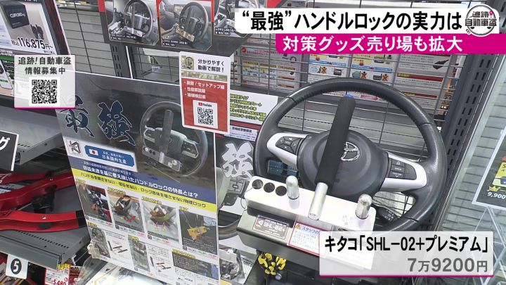 およそ100アイテムを扱う中、最も売れているというのが「ハンドルロック」。ハンドルの回転を物理的に制限して、窃盗犯が車を持ち出せないようにする定番の防犯グッズだ。