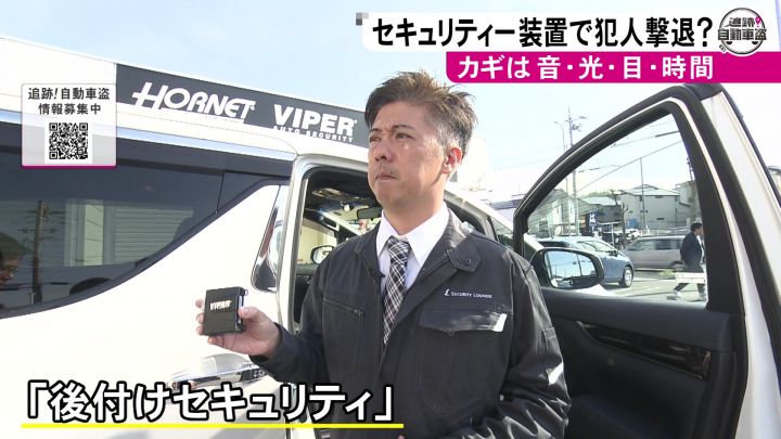 カーセキュリティシステムの開発や販売などを行う加藤電機の加藤学社長によると、音や光で犯人に警告するとともに、盗むのに“時間をかけさせる”ことがポイントだという。