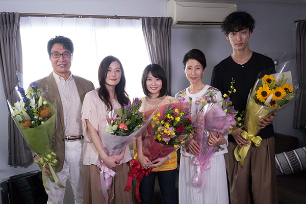 仁美役の国生さゆりさんと、知也役の前田旺志郎さんは、福本家のセットでクランクアップ。前田さんは「最後の場面で、お母さん役の国生さんとじっくり演技が出来て、良かったです」と。スタッフさんに「国生さんと前田さんは、これにて撮影終了です!」と告げられた際、「終わったー!バンザーイ!!」と満面の笑顔だった国生さんですが、挨拶では「とても苦しい役でした」と涙ながらに。難役を精一杯演じたことに達成感のある表情を浮かべ、監督や前田さんと強く握手をしていました。