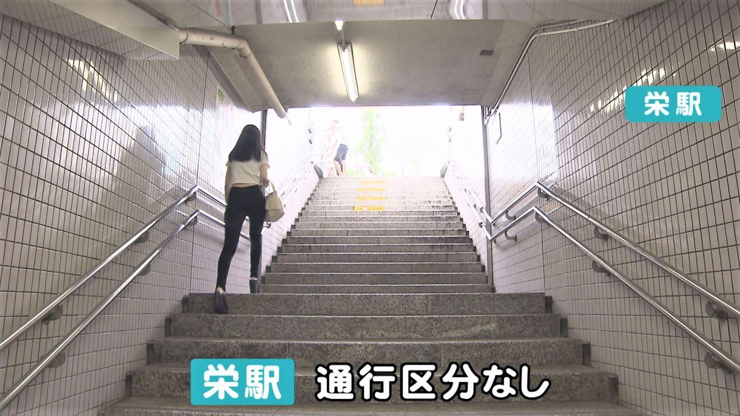 2番目に利用者が多い「栄」駅でも、通行区分の表示は見つけられませんでした。