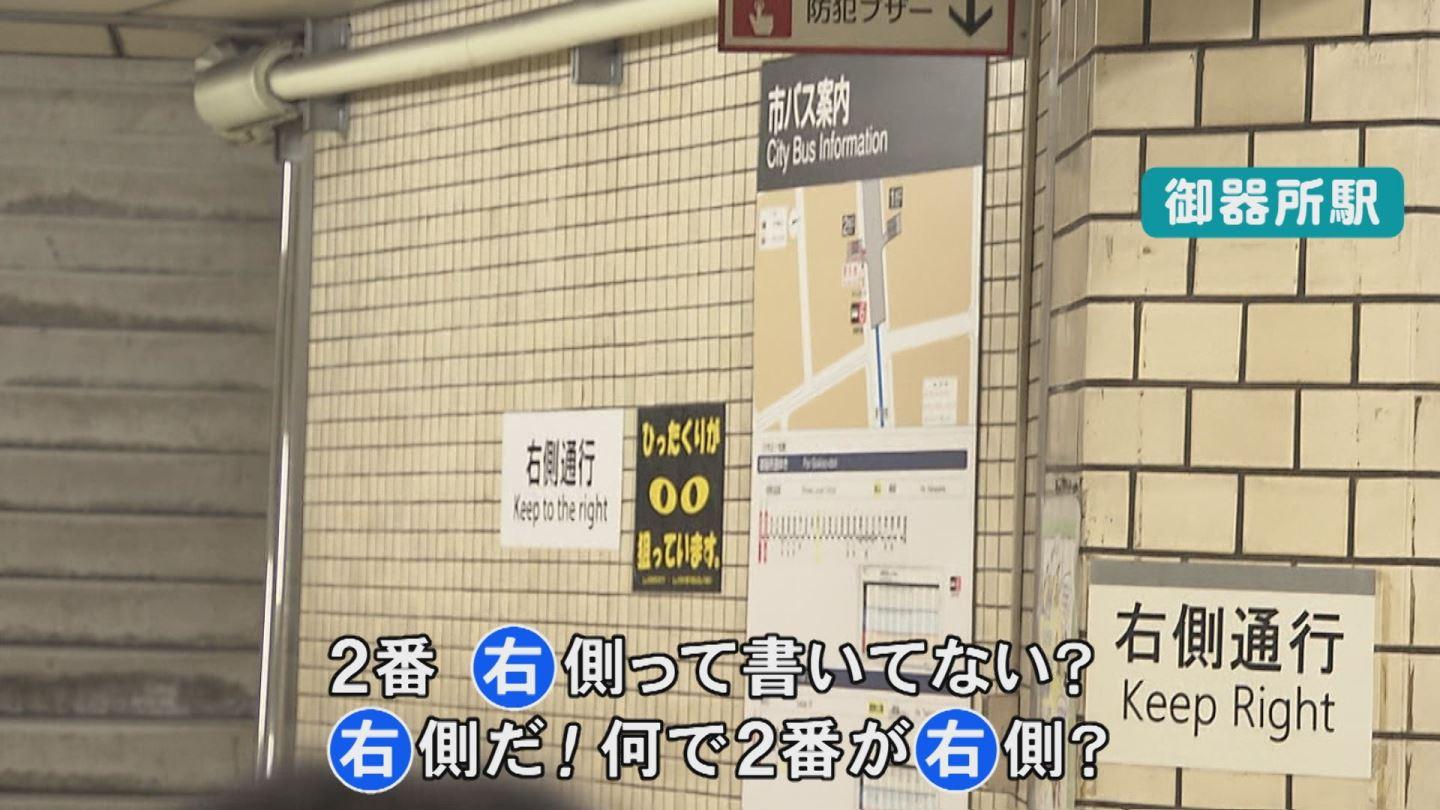 今池は全部「左」?かと思いきや…。12か所ある出口のうち、なぜか9番出口だけに「右側通行」の表示が…。その理由を駅長に聞きました。