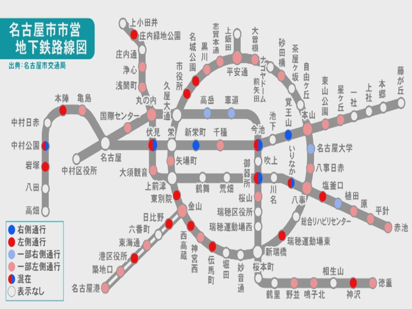 名古屋の地下鉄の通路は「左側通行」か「右側通行」。調べてみると、出口の通路幅や役所や学校など利用者が多い周辺施設の位置などを考え、人の流れをスムーズになるよう、各駅が独自に決めていることがわかりました。